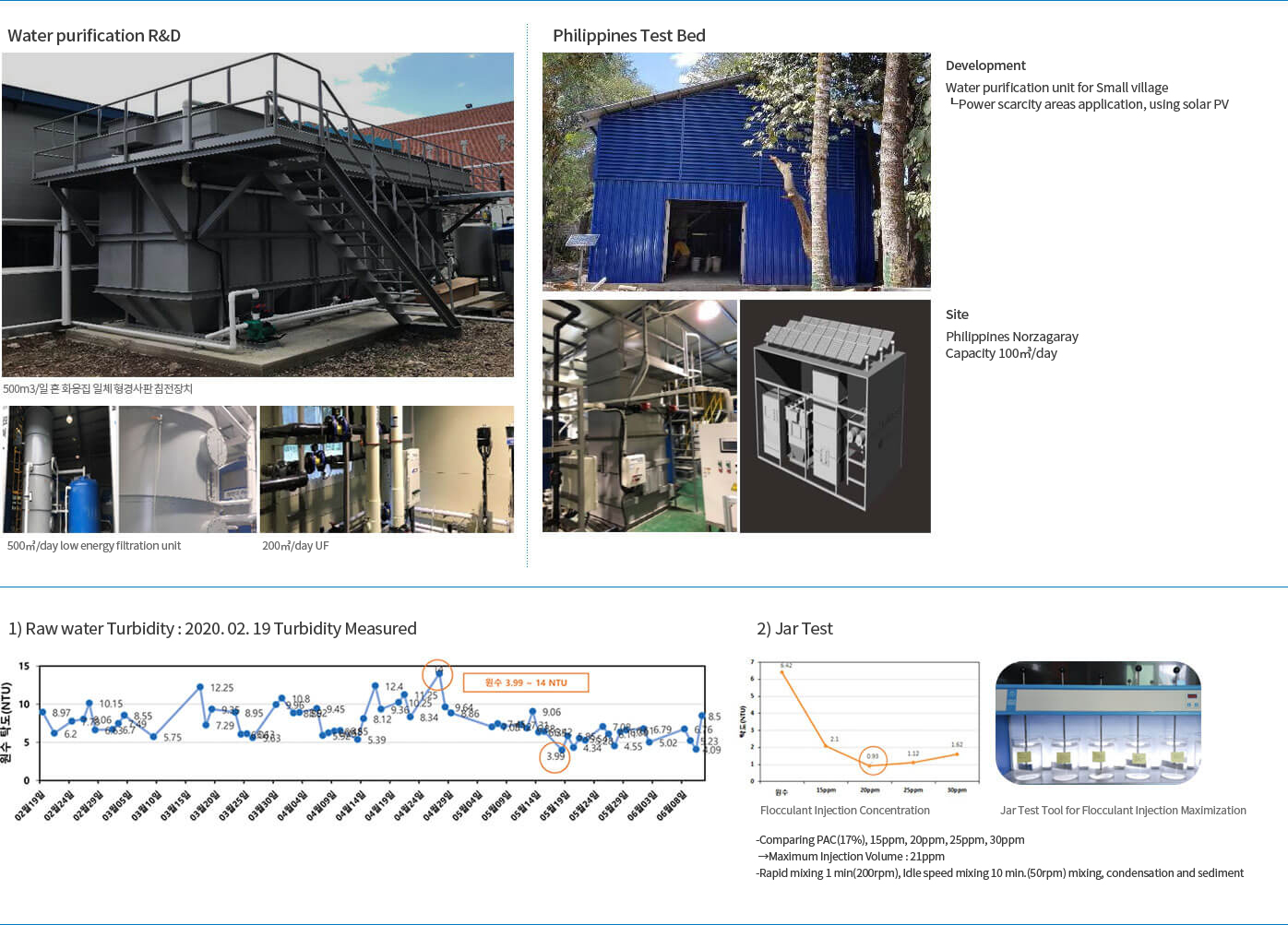 For innovative techical development, we developed low energy type high tech water treatment systemand we effort on low energy type desalination technology and environment friendly water purification,